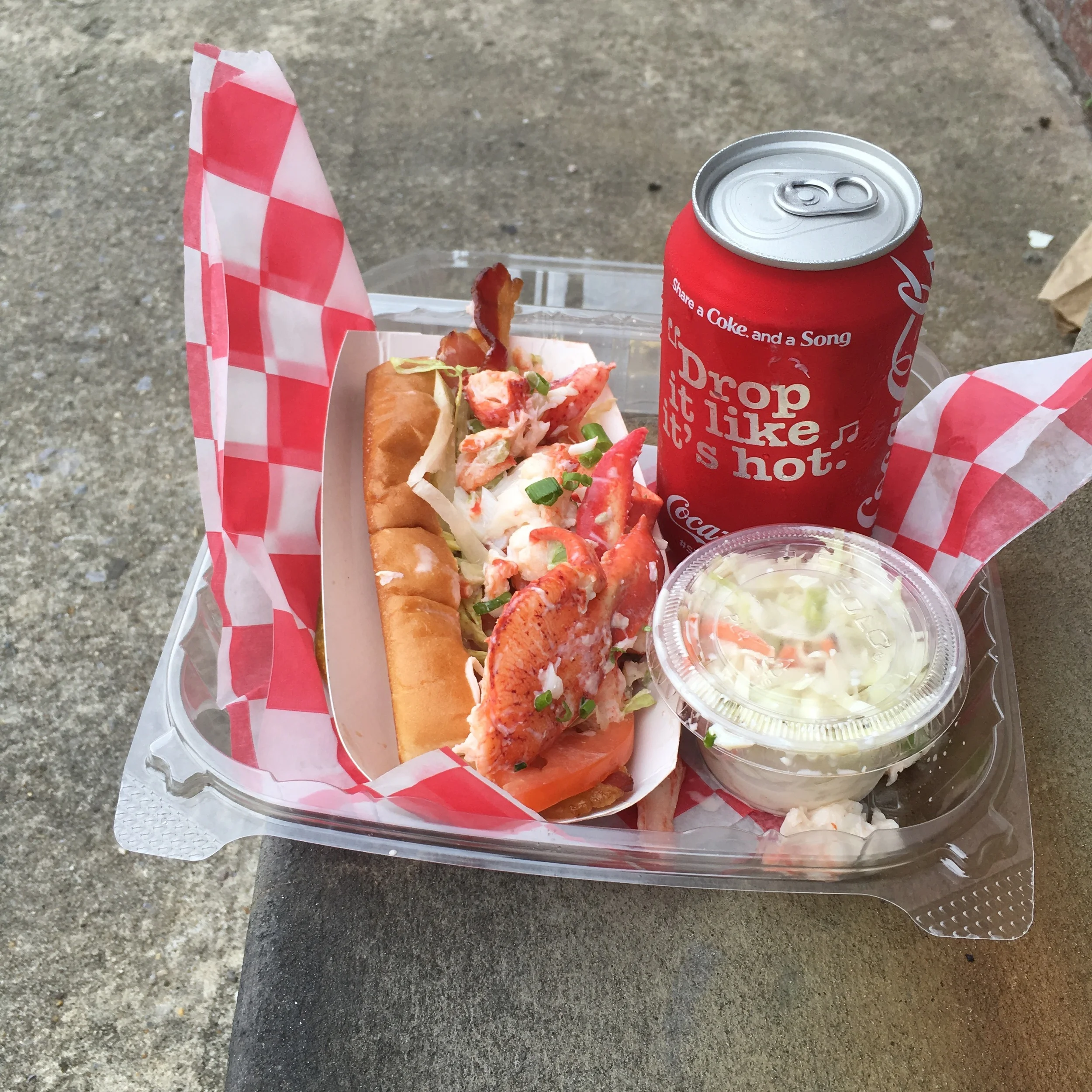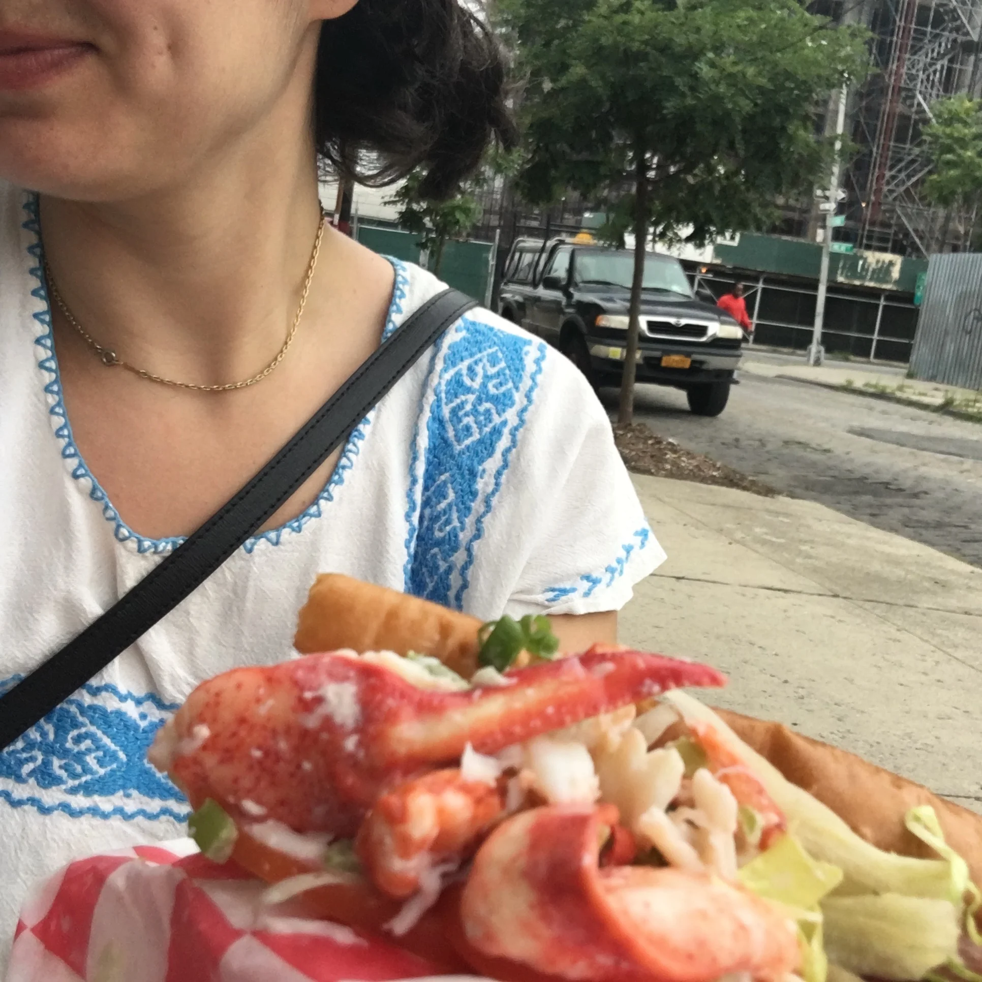 After about 20 minutes I was at my destination: Red Hook Lobster Pound. I had scoped out the menu on my couch with one eye open and was looking forward to lobster fries (sacrificing waist line for my art, people) but their takeaway menu was shorter than anticipated..leaving me one option: the lobster BLT. I ordered the combo and a coke, standing back to watch the line cooks douse buns in a butter bath and kinda squealed when the head chef pulled 6 lobsters out of the lil pool next to the kitchen. (Tried to get an action shot of her pulling them out but failed, sadly). When my order was called, I grabbed my to go box and walked down the street to a quiet stoop to gram and savor my eats. I grammed so hard, in fact, that I turned in shock when I heard four dudes chuckling and pointing at me across the street. "Sup!" I said. "We're filming a music video" they said "how's the sandwich?". At which point I needed to take a bite to confirm.