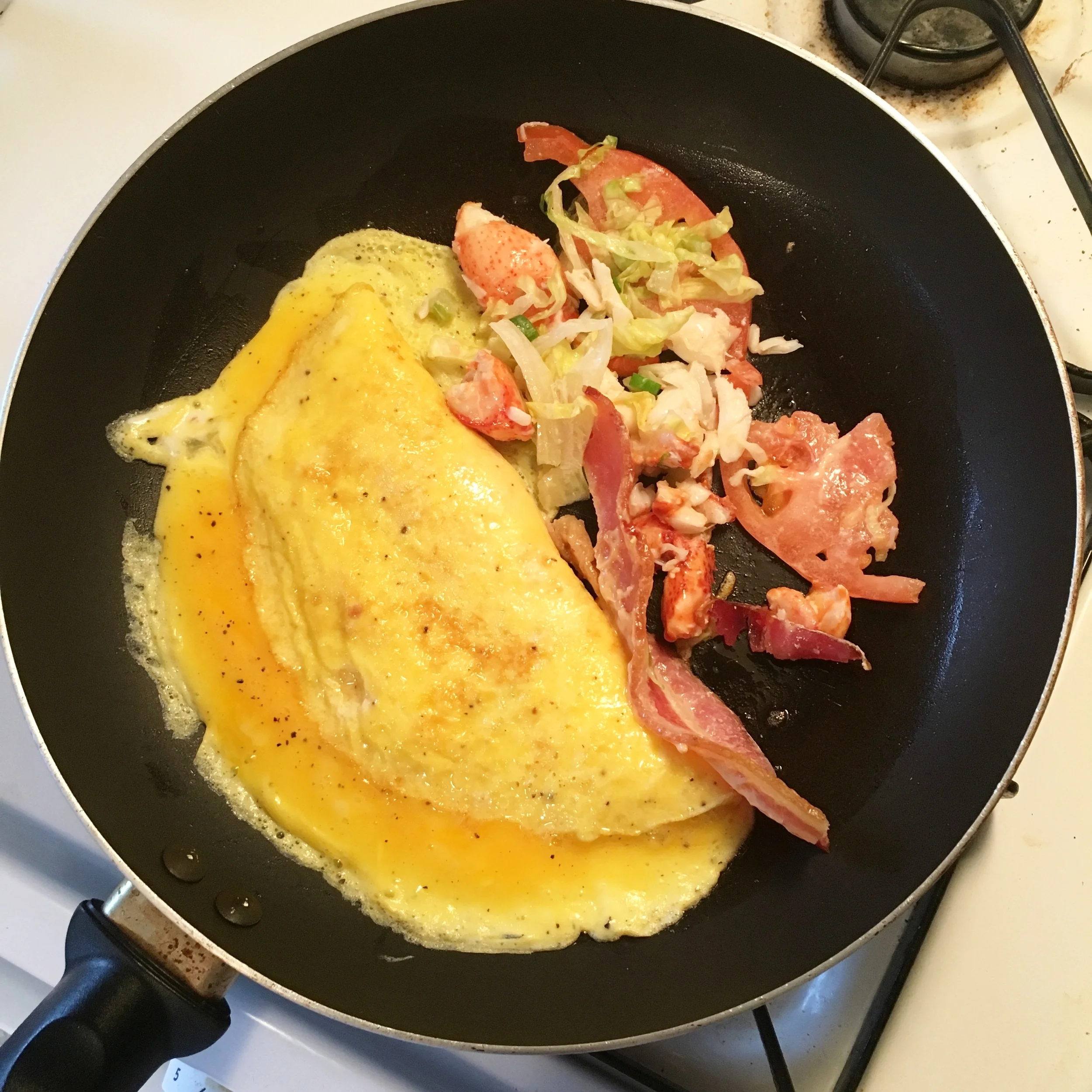 When I got home, I kicked off my shoes and got rolling on an eggy experiment. I decided to whip up some eggs and toast and put the lobster, bacon, and mayo on top for an open-faced lil snack. I did just that, pouring my can of coke over a phat cube, and settled in with the Sopranos. #YYF forever.