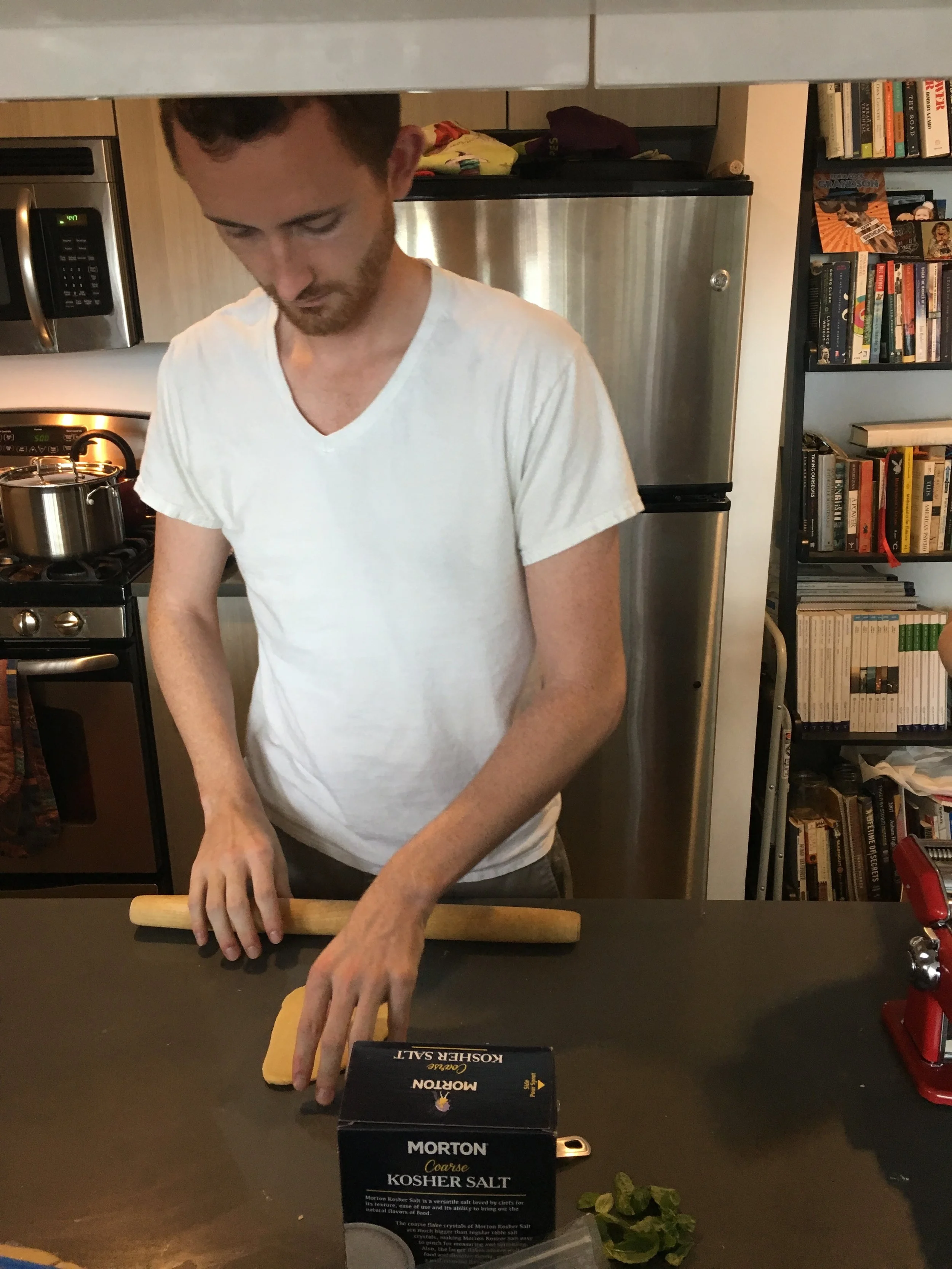 Back to reality - there we were with 6 eggs, flour, a rolling pin, the new Bon Iver album, and a beautiful red sauce simmering away on the stove.